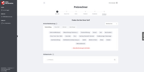 4. Je nach Nutzung wählst du dann entweder „Hintergrund-Musik am Messe-Stand“ aus oder „Veranstaltung auf der Messe“