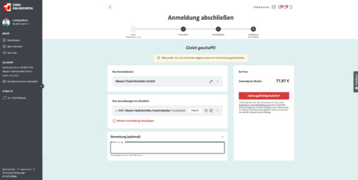 Ganz am Ende – kurz vor dem finalen Versand – siehst du dann ganz unten das Feld „Bemerkungen“.